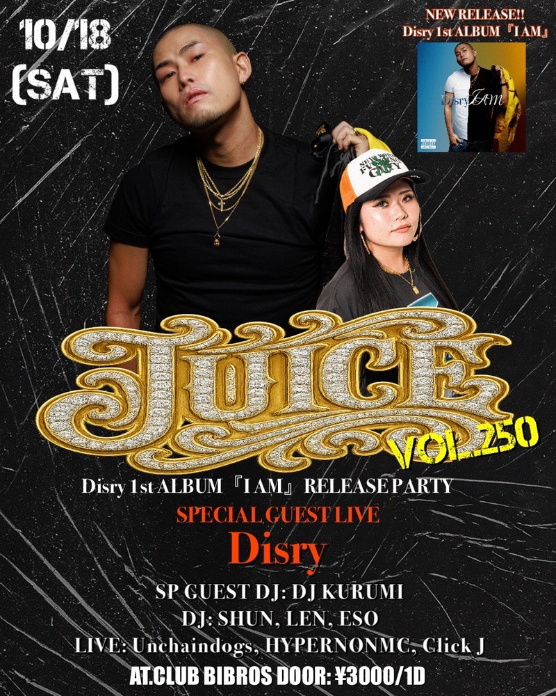 【愛媛】JUICE Vol. 250 LIVE 2025/10/18(土) 22:00 - BIBROS 地図を表示 DOOR ¥3000 (1D) 【Special GUEST LIVE】 Disry 【SP GUEST DJ】 DJ KURUMI 【DJ】 SHUN LEN ESO 【LIVE】 Unchaindogs HYPERNONMC Click.J URLをコピーする 報告する